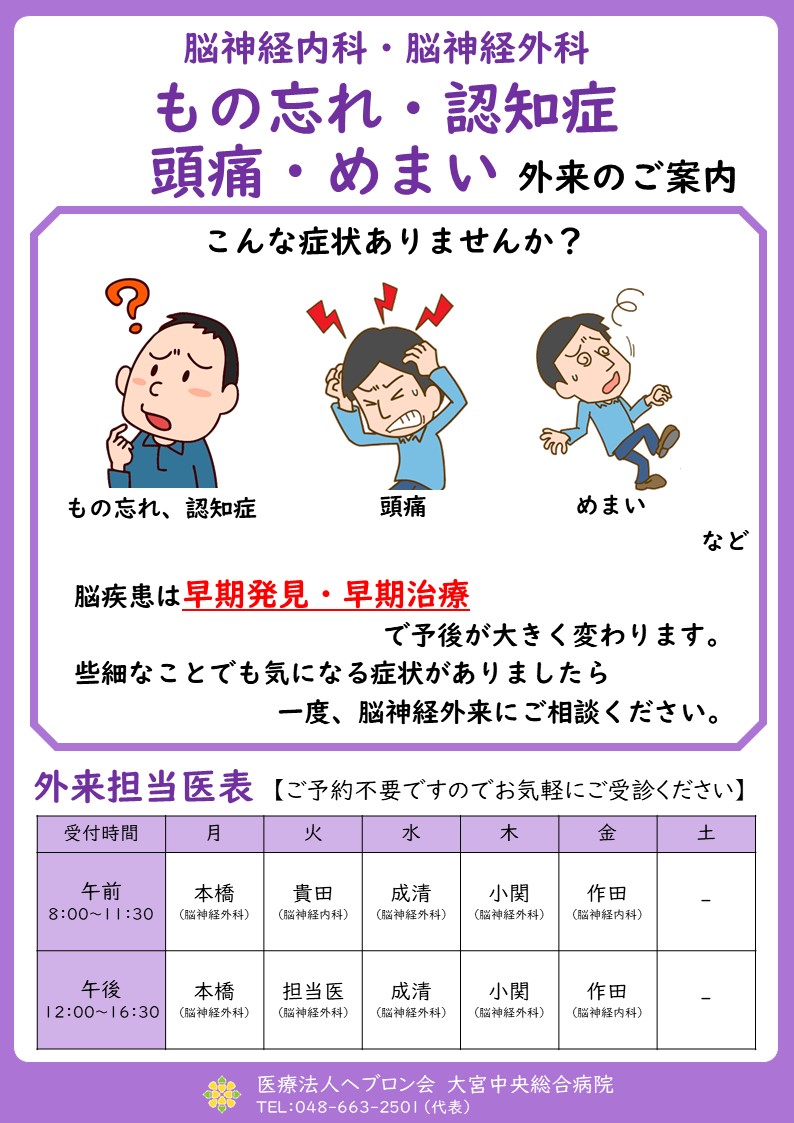 もの忘れ・認知症・頭痛・めまい外来のご案内