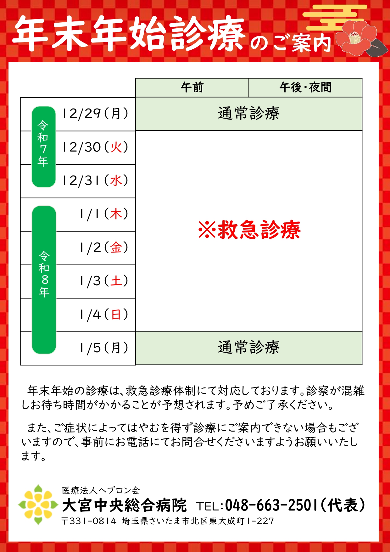 年末年始診療のご案内