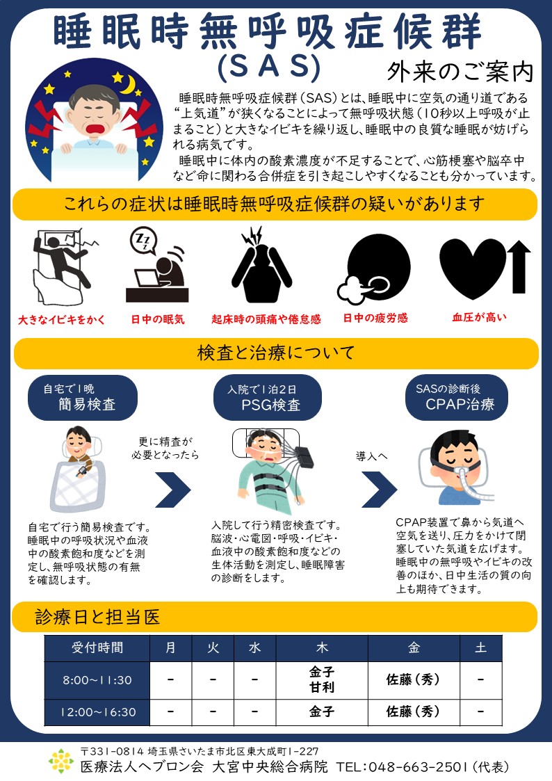 息苦しさ、咳、痰、血痰、胸の痛み、いびき、睡眠時無呼吸など